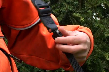 Beim in Anschlag bringen des Gewehres gleiten die Riemen von selbst nach unten und der Jäger zielt ungehindert. Integrierte Drehwirbel verhindern das Verdrehen des Gurtes.